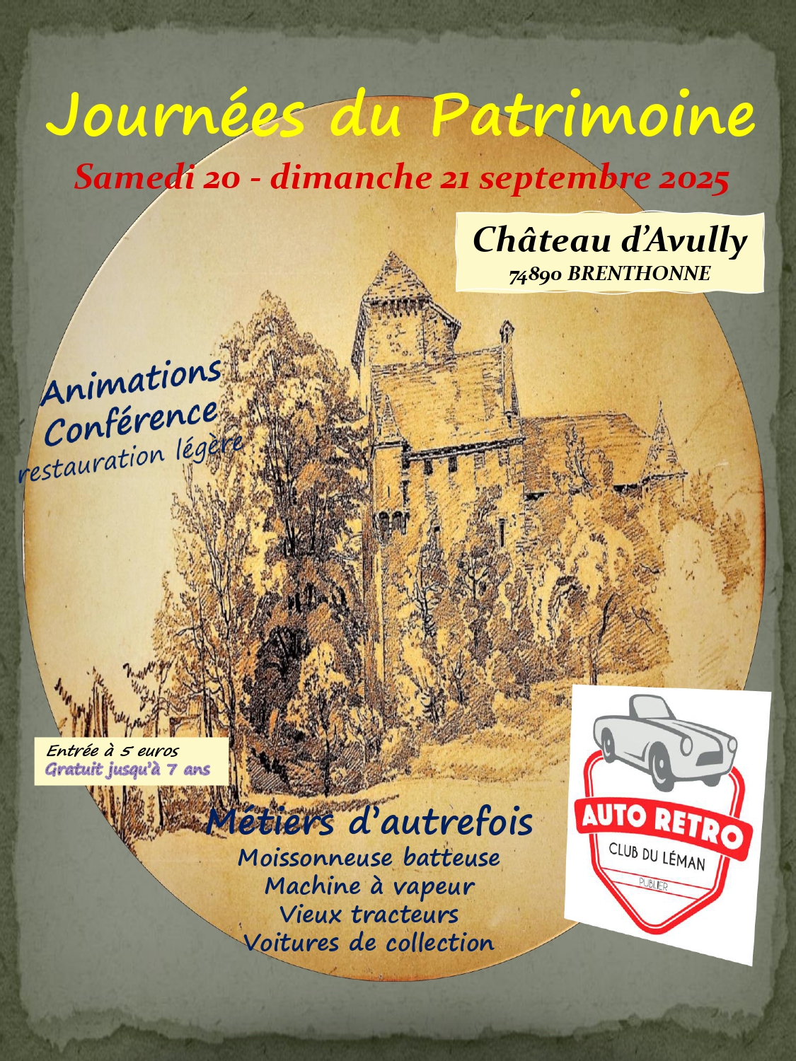 La conférence est gratuite pour ceux qui souhaitent participer à la conférence. Après la conférence, il y aura un grand buffet dînatoire maison au prix de 25€. Les recettes seront versées pour contribuer à la rénovation du Château d’Avully.