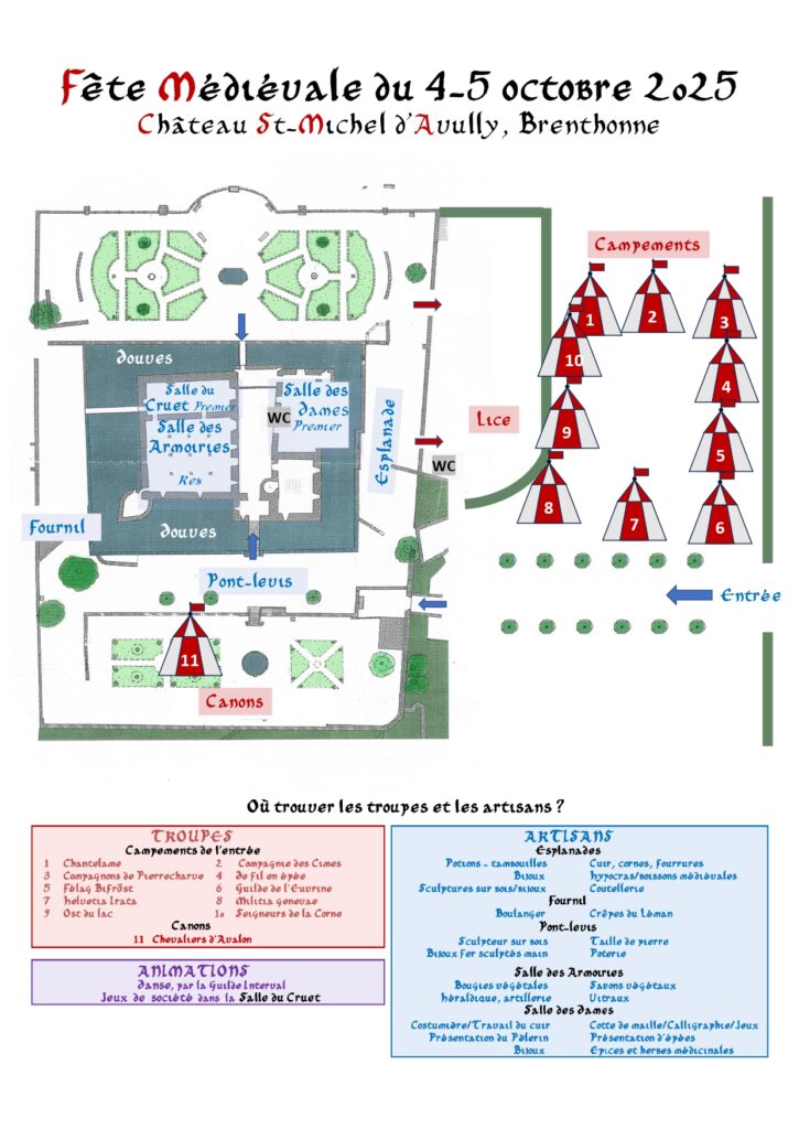 Pour cette 7ème édition, 150 participants seront réunis pour animer le château d’Avully avec 12 compagnies médiévales et une quinzaine d’artisans travaillant le bois, la pierre, le cuir et le fer.