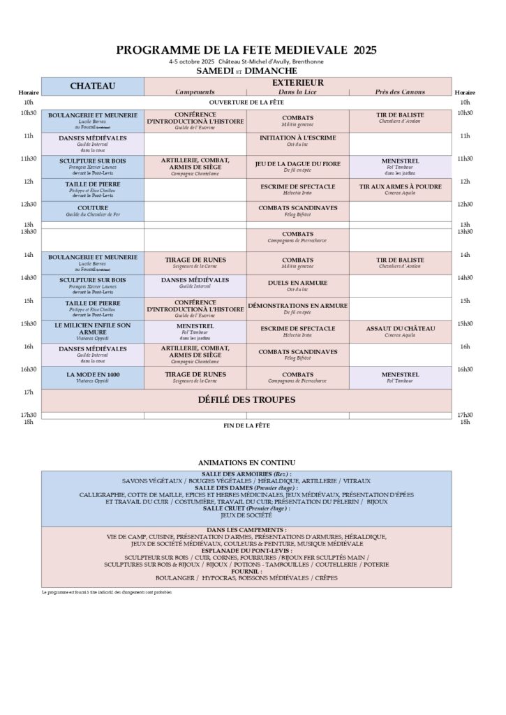 🎭 Au programme : ✨ Nombreuses animations et ateliers ⚔️ Combats et jeux médiévaux 🏪 Marché médiéval authentique 🎵 Troubadours et saltimbanques 🍖 Petite restauration et breuvages